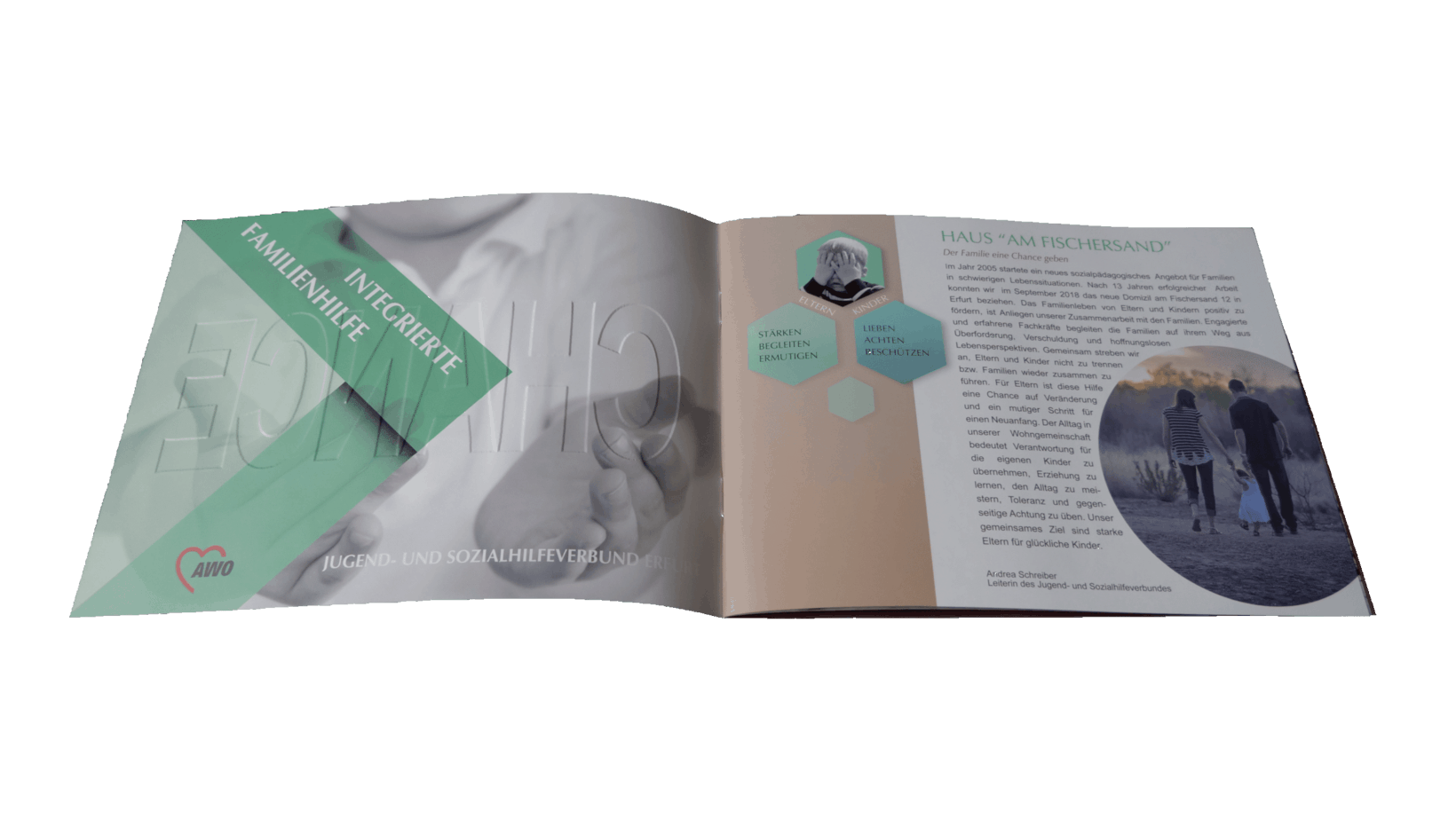 Konzeption, Layout und Umsetzung einer Broschüre anläßlich der Eröffnung des Hauses am Fischersand